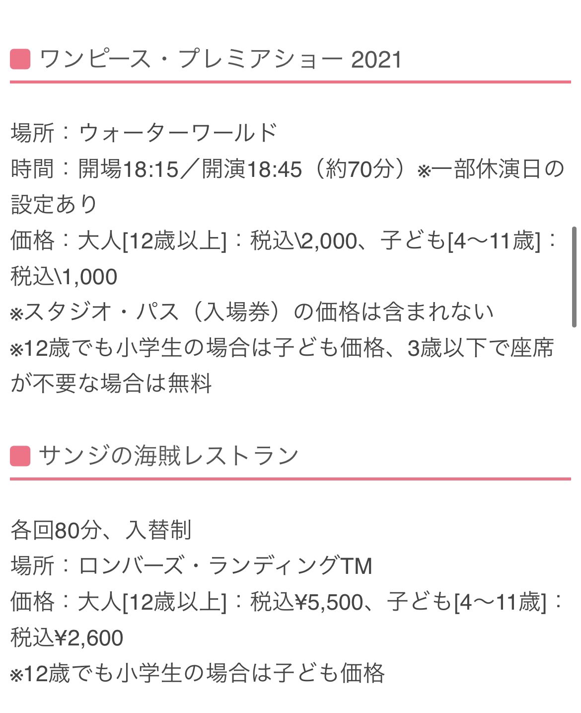 Rui Usjファン ワンピース プレミア サマー 21 開催期間 21年8月6日 金 10月31日 日 ワンピース プレミアショー21 大人00円 子ども1000円 サンジの海賊レストラン 大人5500円 子ども2600円 Onepiece Usj T Co Qed4qolmx0